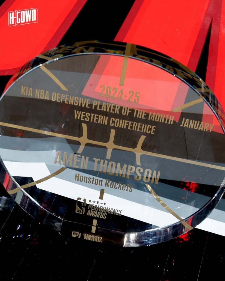 在本场比赛之前,阿门拿到了1月份最佳防守球员奖杯,火箭官方写道:“实至名归。”
