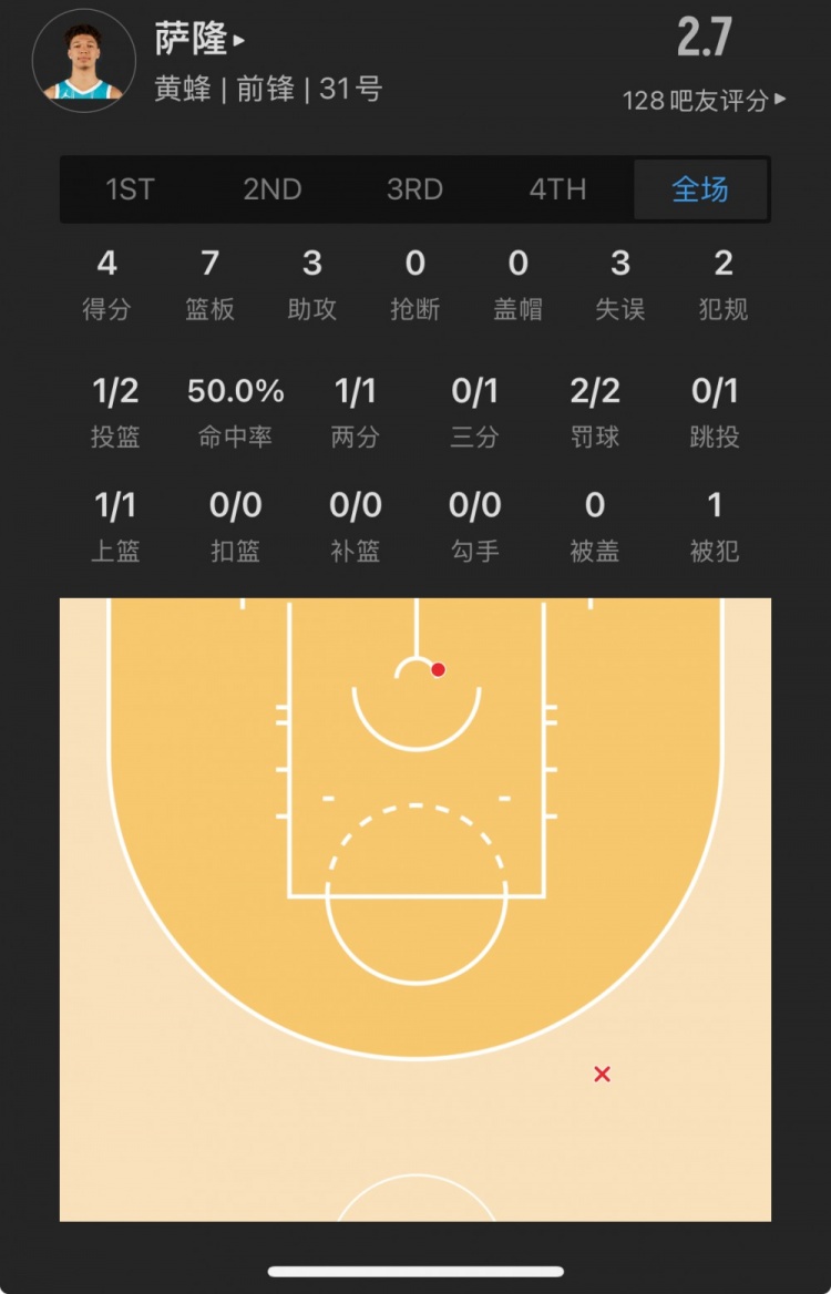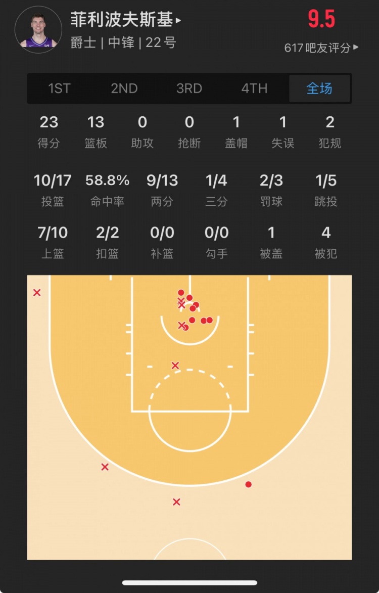 爵士32号秀 凯尔-菲利波夫斯基 登场28.8分钟