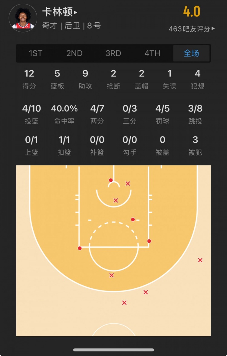 奇才14号秀 卡尔顿-卡林顿 登场34.4分钟