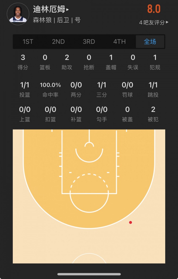 森林狼8号秀 罗布-迪林厄姆 登场5.9分钟
