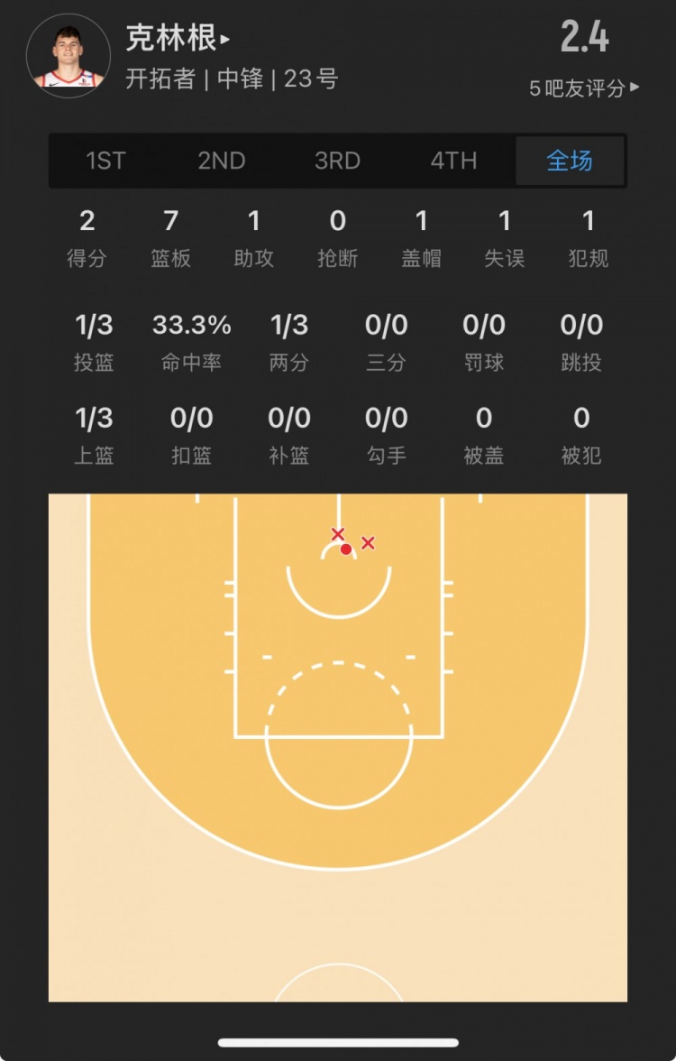 开拓者7号秀 多诺万-克林根 登场20.0分钟
