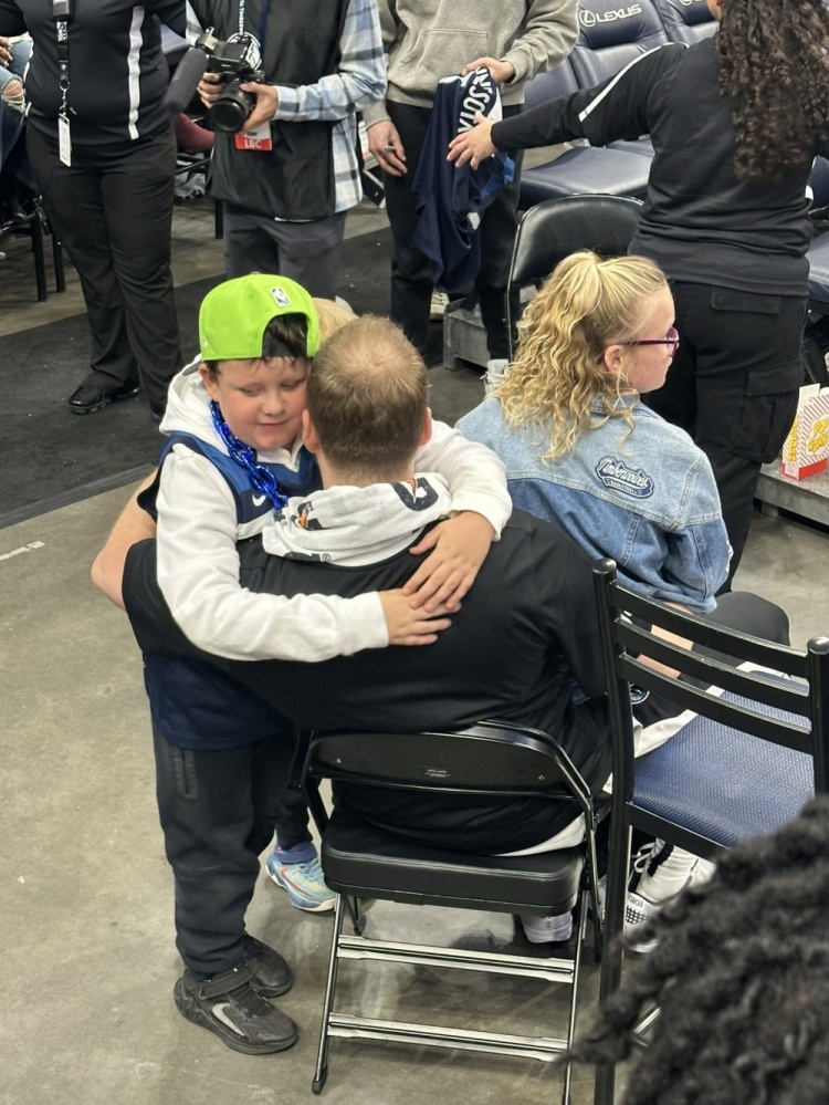本场比赛,森林狼老将乔·英格尔斯12岁的自闭症儿子雅各布,在家人的陪同下来到了现场观看父亲的比赛。在家人的支持下乔-英格尔斯今晚首发出战六分钟,尽管英格尔斯未能得分,但这个夜晚的意义远非技术统计所能体现。