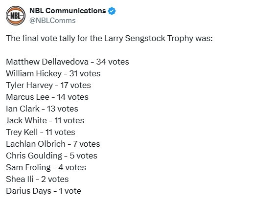 在投票中,德拉维多瓦获得34票,山西男篮绯闻外援特雷-凯尔获得11票。