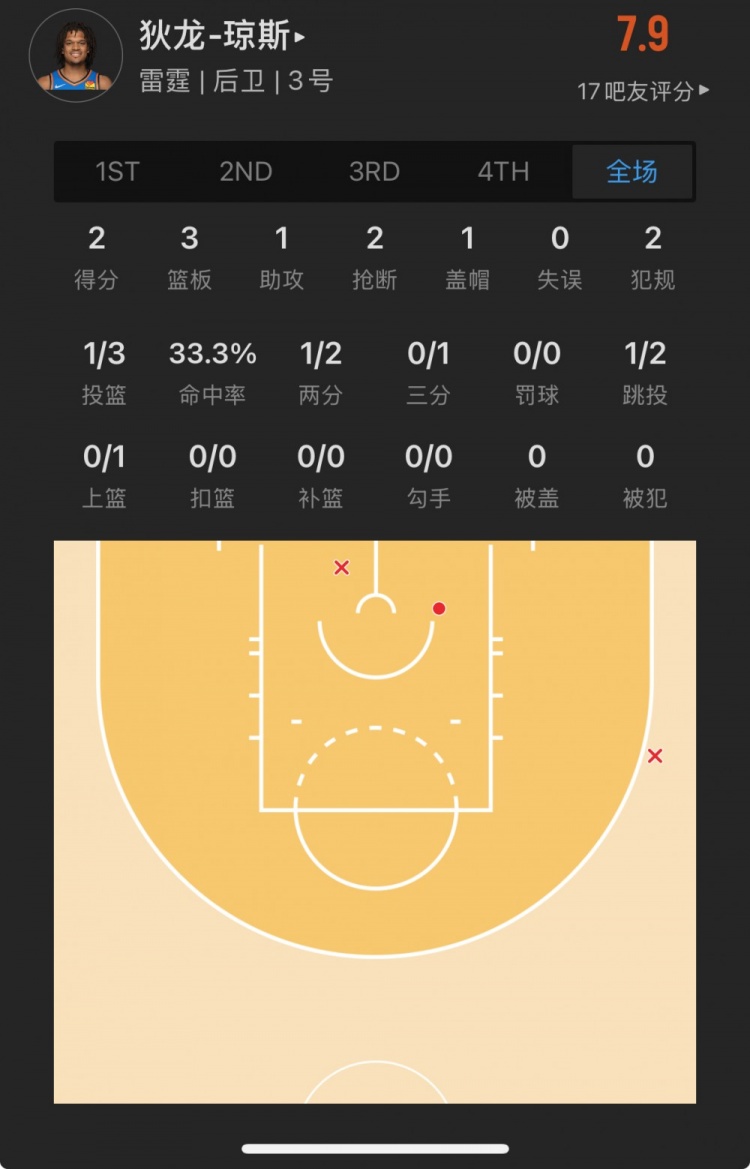 雷霆26号秀 狄龙-琼斯 登场12.9分钟