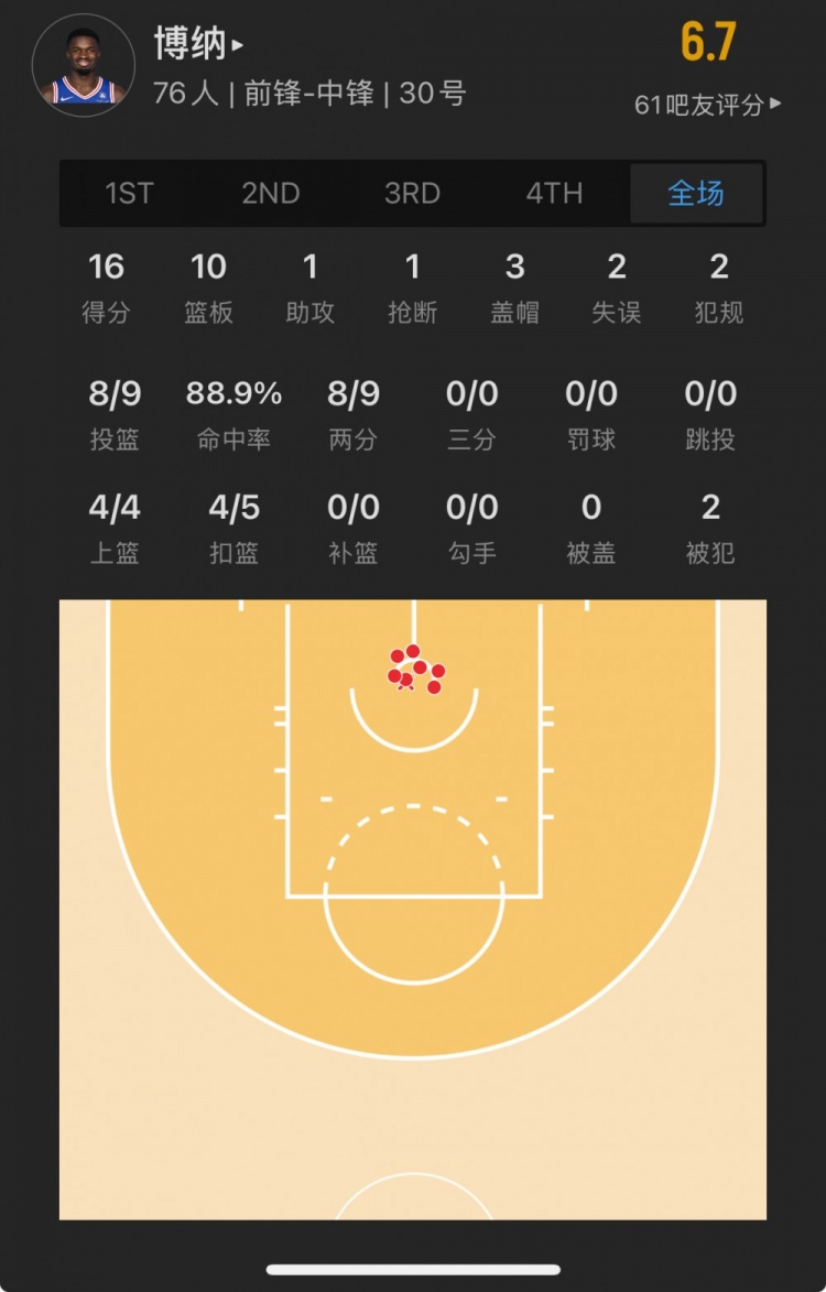76人41号秀 阿德姆-博纳 登场29.6分钟