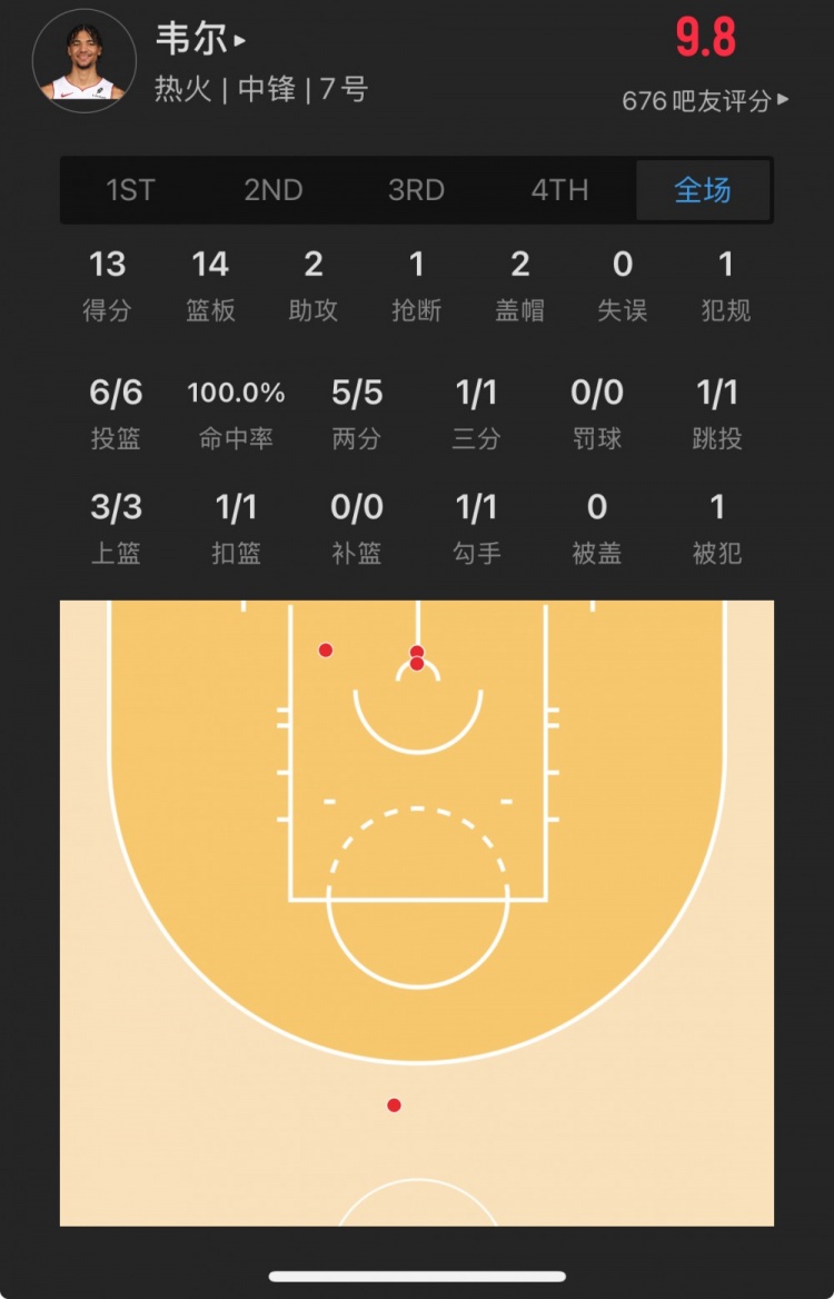 热火15号秀 克雷尔-韦尔 登场30.5分钟