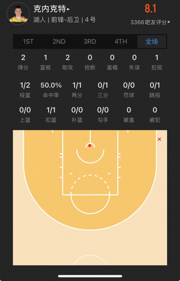 湖人17号秀 道尔顿-克内克特 登场5.4分钟
