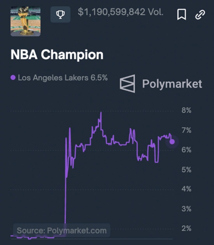 2月7日讯 NBA交易截止日已过,据博彩网站信息,湖人在交易截止日前夺冠赔率为+5782,目前暴涨至+270(押100,若中则连本带利返还370),目前夺冠概率为6.5%。