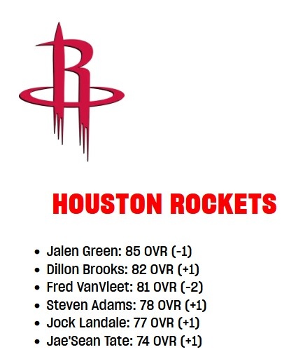 火箭2K能力值更新:杰伦-格林-1至85 范弗里特-2至81 狄龙+1至82