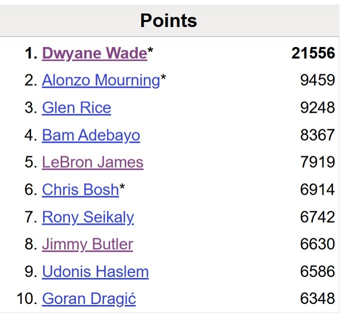 至此,希罗生涯总得分来到了6364分,超越了戈兰-德拉季奇,升至热火队史第十,将追赶哈斯勒姆(6586分)。