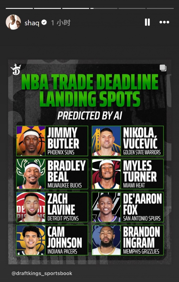 奥尼尔转发!AI预测下家:巴特勒去太阳 勇士得武器 比尔去雄鹿 博彩公司用AI预测了交易市场上热门球员的下家,奥尼尔进行了转发。 2025/02/01