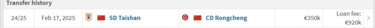 2月17日讯 《转会市场》显示,山东泰山队归化球员德尔加多租借加盟成都蓉城,租借费为92万欧元,约合人民币700万元。