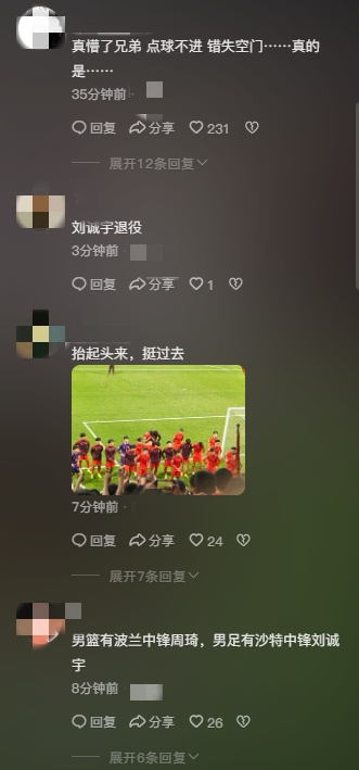 赛后球迷涌入刘诚宇社媒评论区,有球迷仍支持球员,也有球迷对刘诚宇进行了攻击。