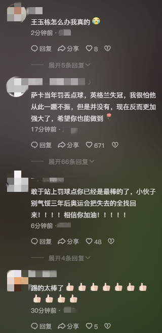 球迷涌入刘诚宇社媒:希望你能像萨卡一样更强大!相信你加油!