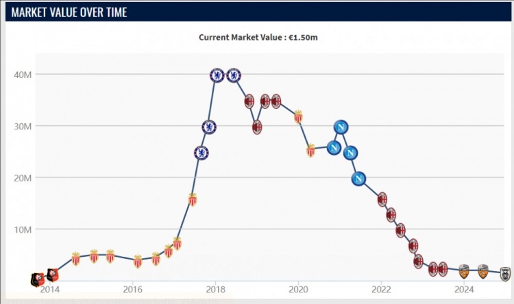 巴卡约科成名于摩纳哥,在2017年与姆巴佩一起夺得了法甲冠军,随后以4000万欧加盟切尔西,一共出场43次,打进3球助攻3次。