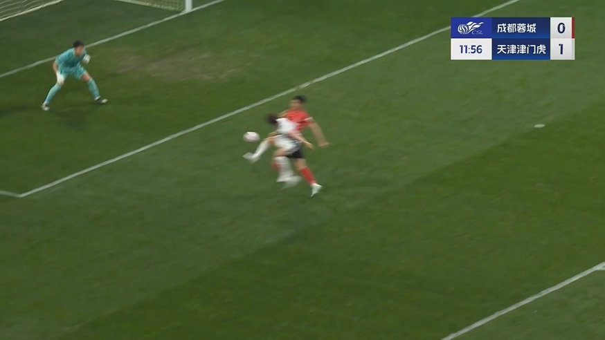 03月02日讯 中超第二轮,成都蓉城vs天津津门虎,第12分钟,哈达斯边路接后场长传,随后送出传中,王秋明门前不停球抢点得手,蓉城0-1落后津门虎!