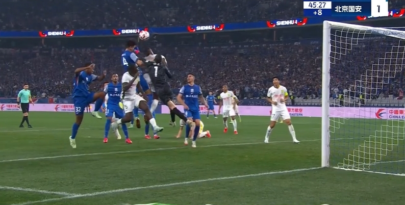 艾迪禁区内亮鞋底铲到张玉宁小腿,裁判麦麦提江没有表示