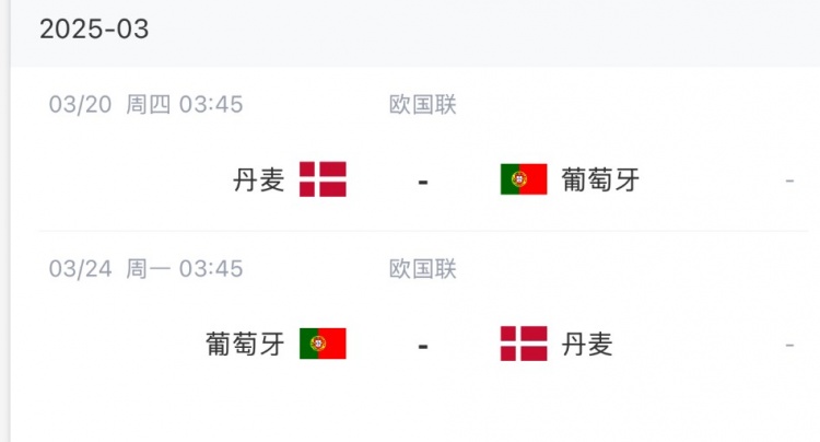 在3月份国际比赛日,葡萄牙队将在欧国联1/4决赛中对阵丹麦队。