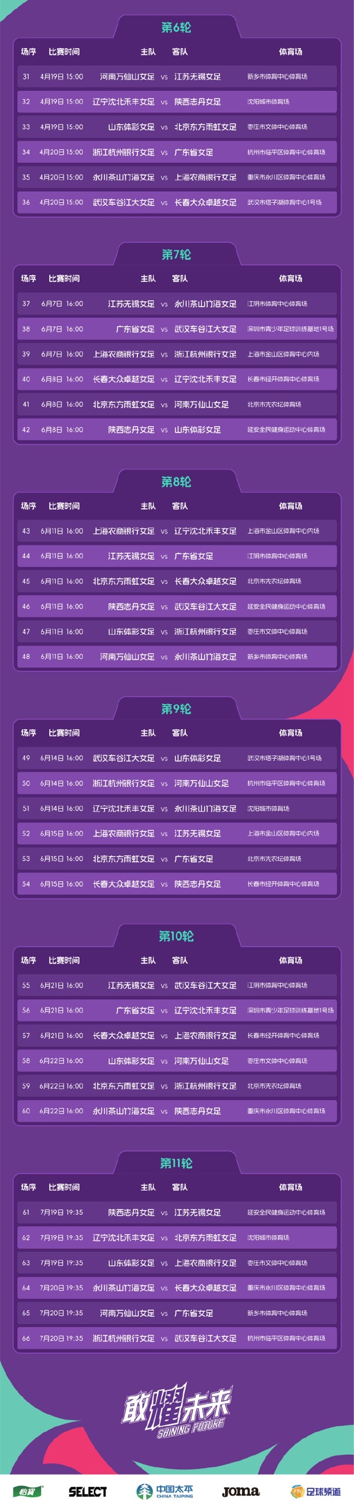 2025中国太平中国足球协会女子超级联赛对阵日程表