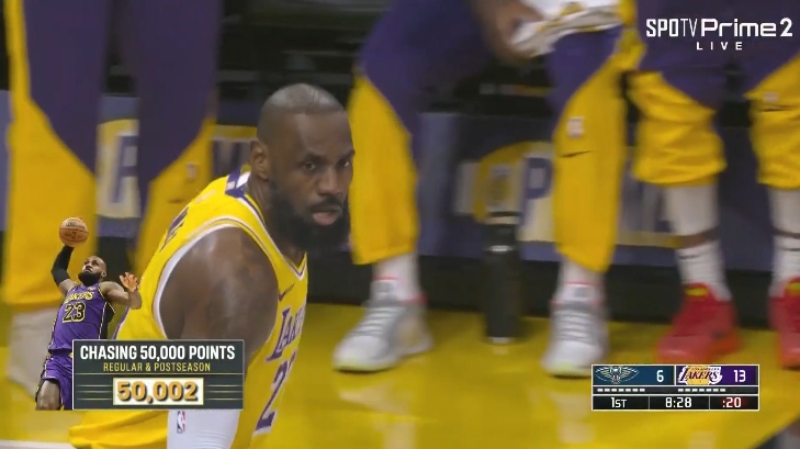 今日NBA常规赛,鹈鹕对阵湖人。40岁的湖人球星詹姆斯达成生涯50000分(常规赛+季后赛)。