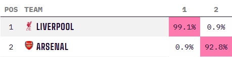 只剩西甲有悬念⁉️五大联赛夺冠概率:利物浦99%拜仁97%巴黎100%