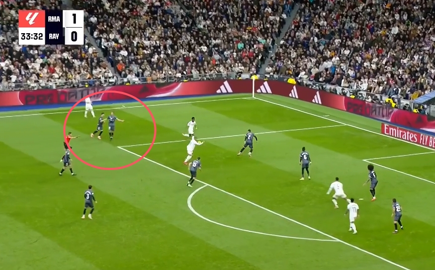 维尼修斯把对手逼成什么样了?巴列卡诺两人撞车,一人摊手