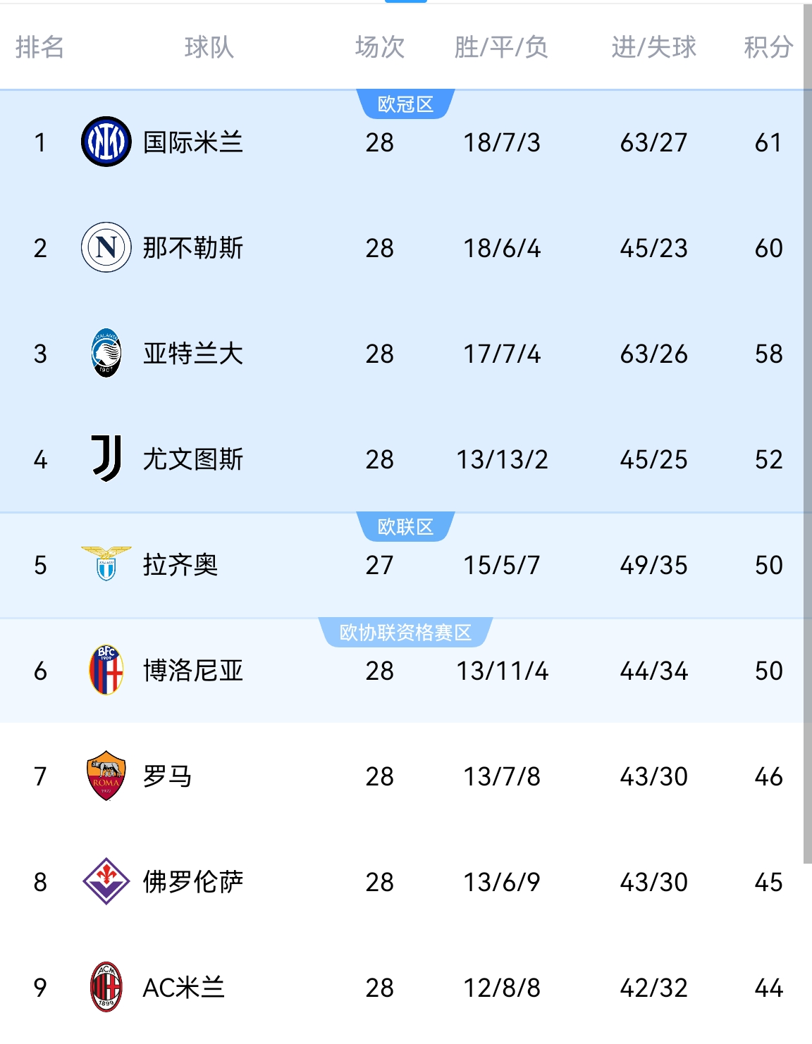目前尤文联赛排名第4,落后榜首9分,领先第5和第6名2分。