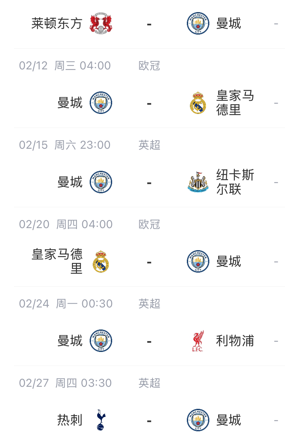 大的在后面?曼城魔鬼赛程才刚开始,后面需2战皇马+战利物浦热刺