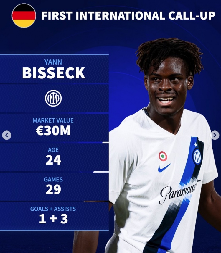 比塞克(国米,德国),3000万欧,24岁。29场1球3助攻