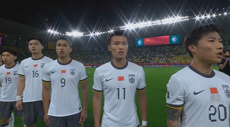 大战一触即发!赛前国歌仪式,国足首发11人高唱国歌