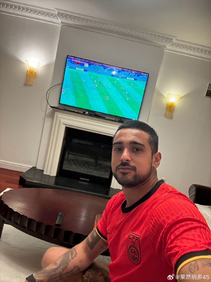 莱昂纳多身穿国足球衣,在社媒打拼音为国足助威:Jiāyóu