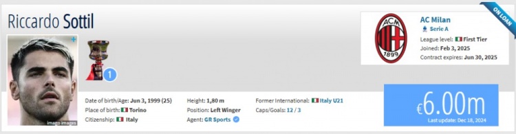 现在,两名球员的德转页面所属球队都已经改为AC米兰。