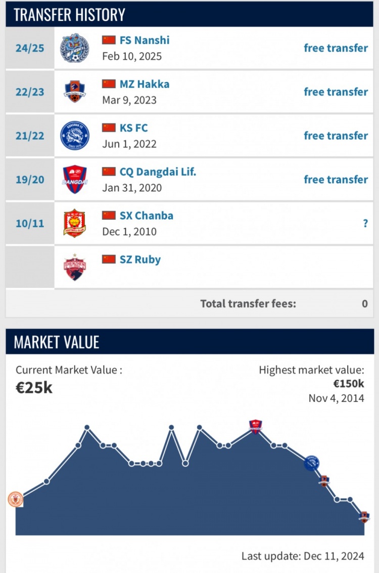 在德转陈杰的个人页面中,他已经于2月10日加盟佛山南狮,不过合同年限并未披露。本次陈杰属于自由身转会,因此佛山南狮无需支付转会费用。