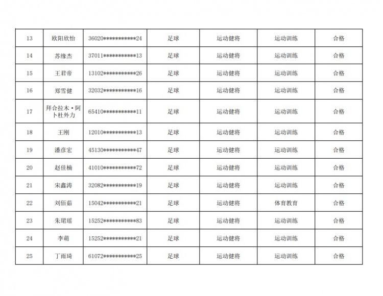 在通过学校资格初审的足球运动员当中,包括刘国宝、何宇鹏、柏杨、苏缘杰、王刚、徐越、王世杰、桑一非等球员,另外女足国脚乌日古木拉也在名单之列。