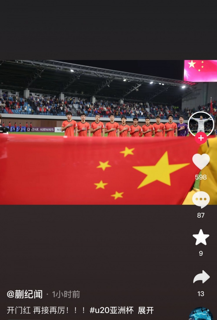 2月13日讯 今天,蒯纪闻更新社媒,庆祝国青在U20亚洲杯取得开门红,并鼓励球队继续前进。