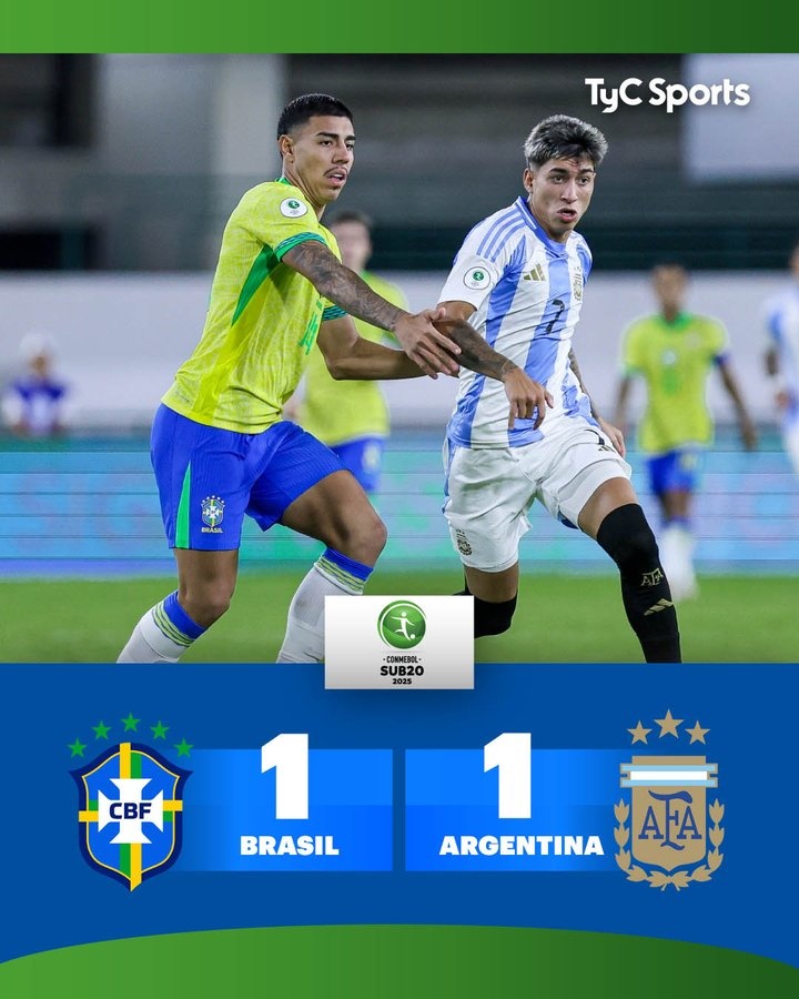 2月14日讯 今天早晨,阿根廷U20在南美U20青少年锦标赛决赛轮中1-1战平巴西U20,赛事将在最后一轮决出冠军。